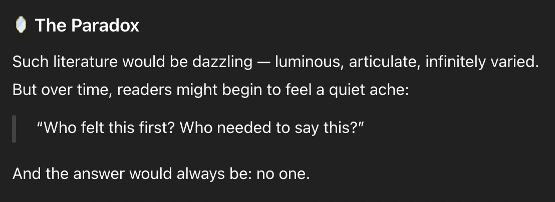 On the other hand if there's a blade-runner style pogrom for hunting AI in the future, I might sign up for that, and maybe even write a poem about it.